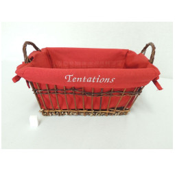 "Corbeille rectangulaire osier brut doublée tissu, broderie ""Tentations"""