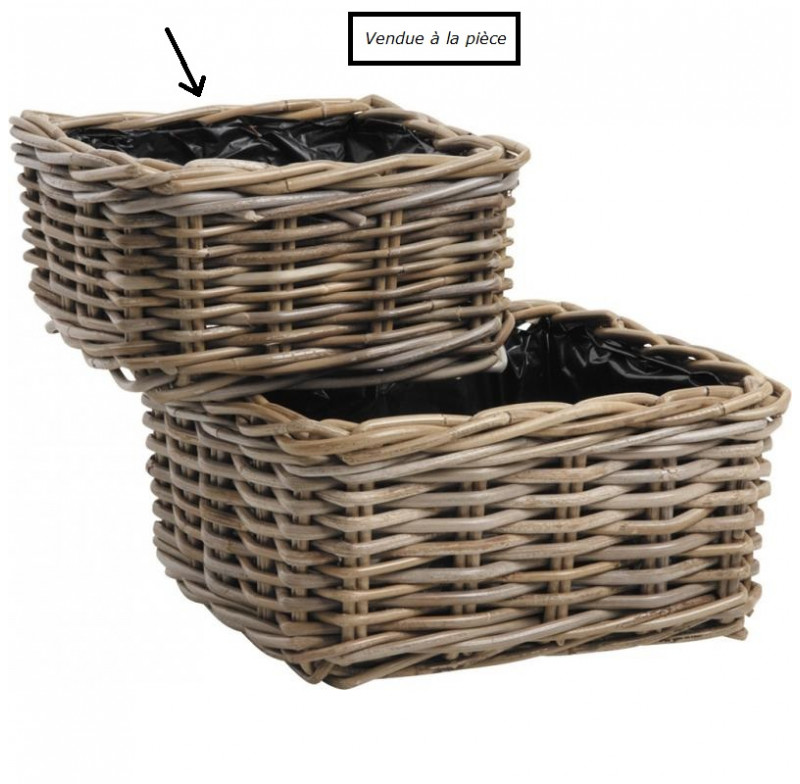 Corbeille carrée en poelet gris doublée plastique PM