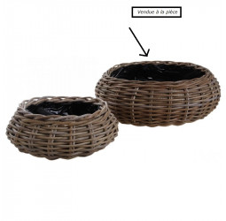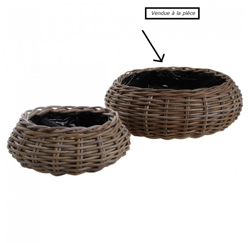 Corbeille ronde en poelet gris, doublure plastique GM