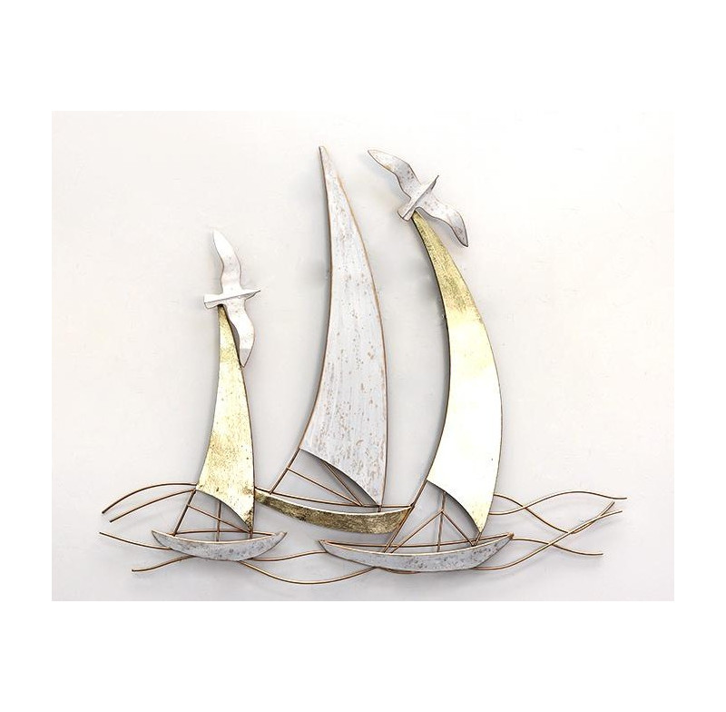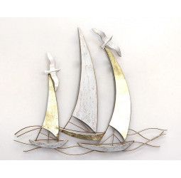 Déco murale " 3 VOILIERS" TGM Blanc/doré