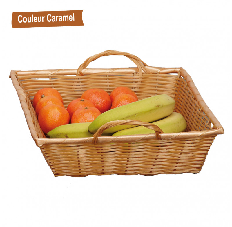 Corbeille avec poignées en polypropylène F.40 x P.30 x Ht 7-10 Caramel